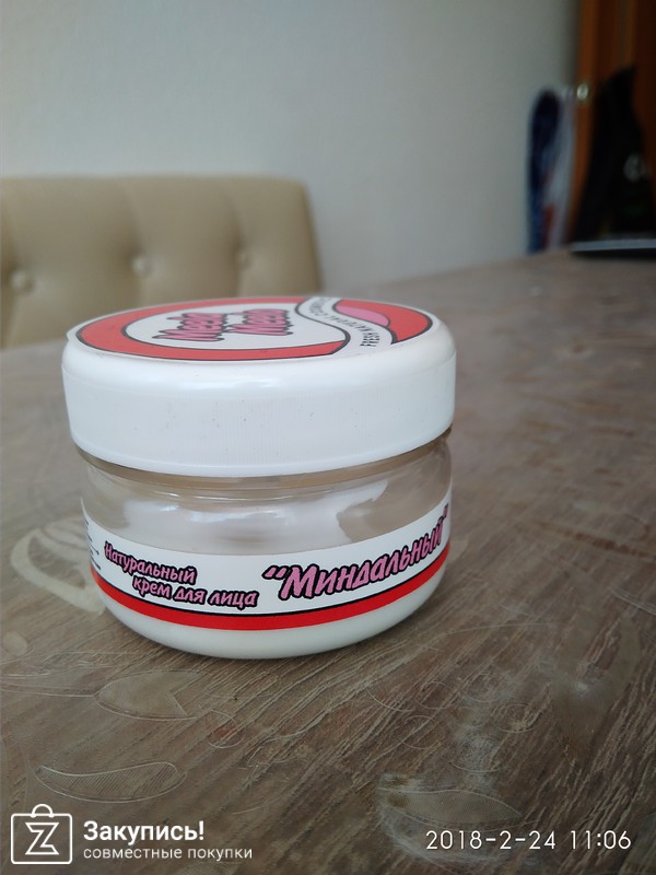 Хочу написать хвалебную оду о креме для лица \"Миндальный\". Это просто чудо крем))) кожа у меня комбинированная, но в зимнее время просто сохнет, особенно когда батареи шпарят и влажность пониженная. Этот крем наполняет кожу влагой питает ее. Жирного блеска поле него у меня нет, на жирной наверно будет, кожа мягкая , тональный крем на него ложиться супер!!! Даже морщинки сглаживает. Запах вообще обалденный )))