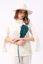 Джемпер NIKVA н923-3 молоко+изумруд