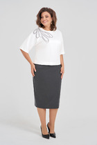 Блуза NIKVA н413-1 молоко, чёрные цветы
