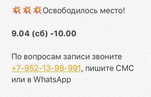 По вопросам записи звоните +7-952-13-98-991, пишите СМС или в WhatsApp, а также можете со мной связаться в вк, моя личная страница https://vk.com/lidasavelyeva