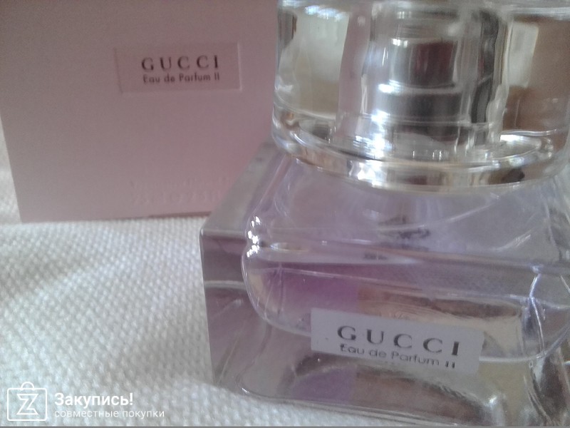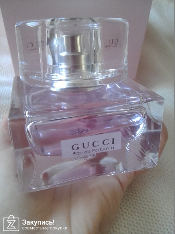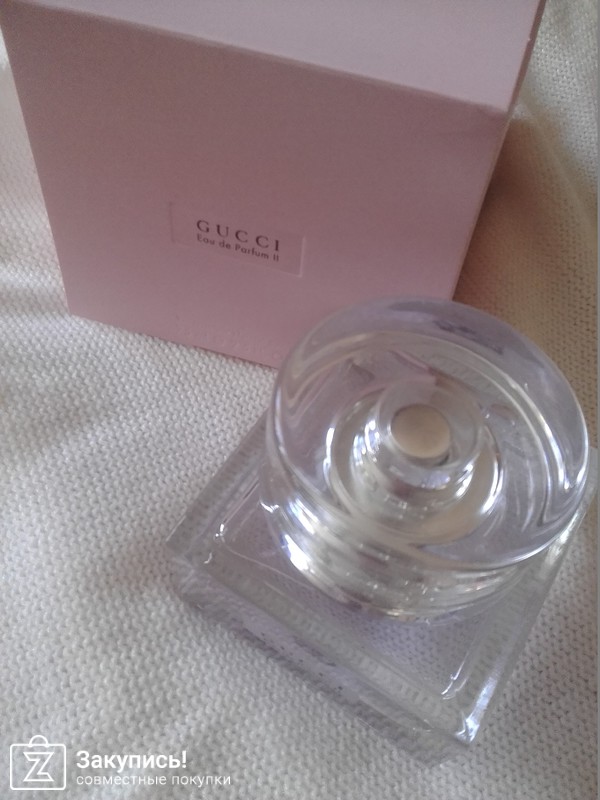 Заказывала вданной закупке Gucci \"Eau De Parfum II\" for women 75ml (версия). По запаху от оригинала почти не отличается, по стоикости - на волосах и одежде держится до 2х дней, на теле не очень долго. Конечно не оригинал, но качество выше ожиданий оказалось. Бутыль мега увесистый с собой в сумочку не возьмешь, если только в хозяйствнную))))) Спасибо организатору!