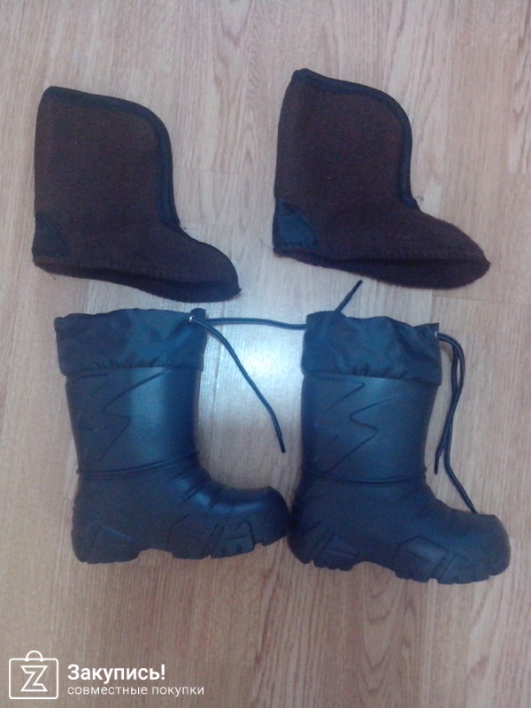 Добавляю фото к отзыву. На фото 2 модели. на мне со съемным меховым сапожком 34/35, на мой 35 впритык с тонким носком. Не знаю смогу носить в -20 или нет, так как впритык. на сыне 22/23 с флисовым вшитым сапожком, сегодня гуляли в лесу в -3, одевали без носка на тонкие колготки, ноги за 2 часа не замерзли. Единственное он еще малыш 1,3, если упадет сам встать не может. Очень легко моются. по его размеру сказать не могу носили 20 впритык, поэтому я думаю у нас есть еще запасик) весна покажет))