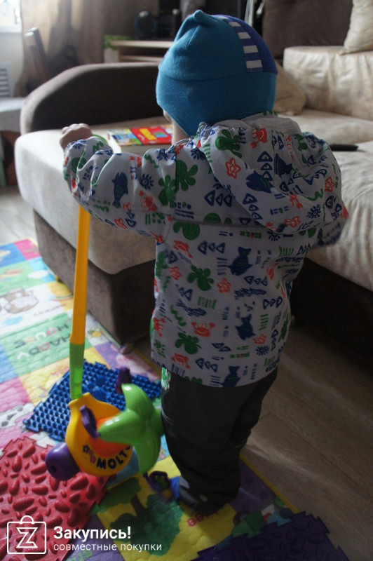Заказывала деми комбинезон дочке. Розовый особо не любим и хотелось чтоб не маркий был. Ребенок ростом 74см, комбез взяла с запасом на весну 86. Флис на капюшоне и на спинке очень мягкий. Рукава подогнули, за счет утяжки на спине не смотрится широкий.Штрипки можно снять и постирать, очень удобно. Спасибо Анне за бюджетную закупку))