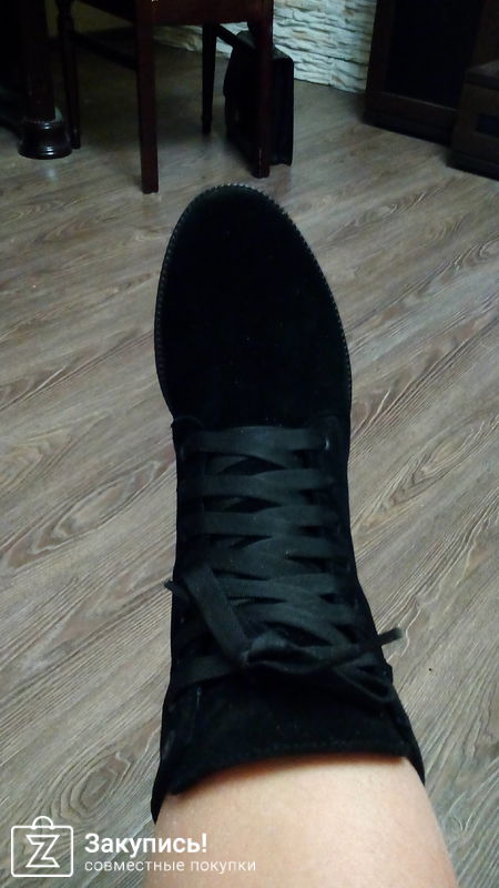 Получила замшевые чёрные ботинки. Замша ровная, красивая. По размеру хорошо. Понравились.