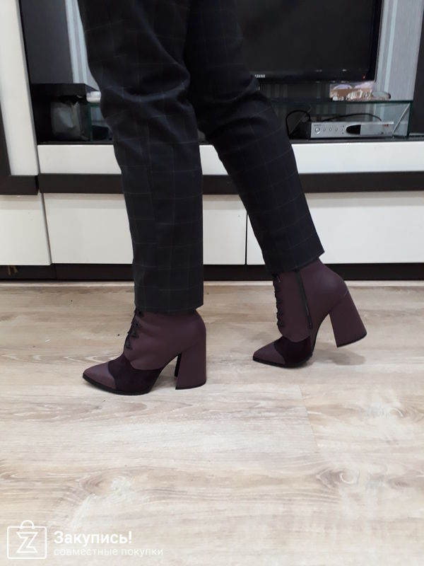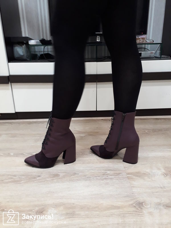 Какие они классные))) как только открыла коробку и уже влюбилась в них😚. Цвееет супер!!! На стопу 23.5 средней полноты заказала 36 р-р. Сели по ноге идеально нигде не давит, на тонкие колготки . Носок не острый, поэтому место хватило пальцам . В обхвате голени тоже хорошо сели)) а то у меня вечно проблема у ботинок ( как ложка в стакане болтались). Здесь все по ноге, все аккуратно. Спасибо Юле большое. Жду следующего сезона с нетерпением.