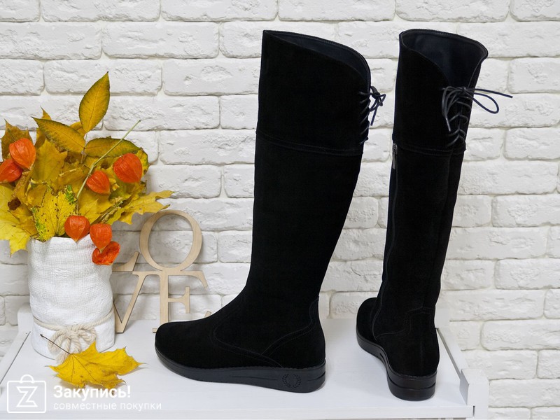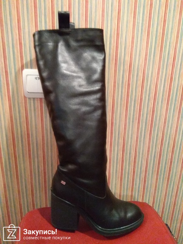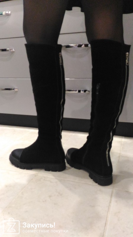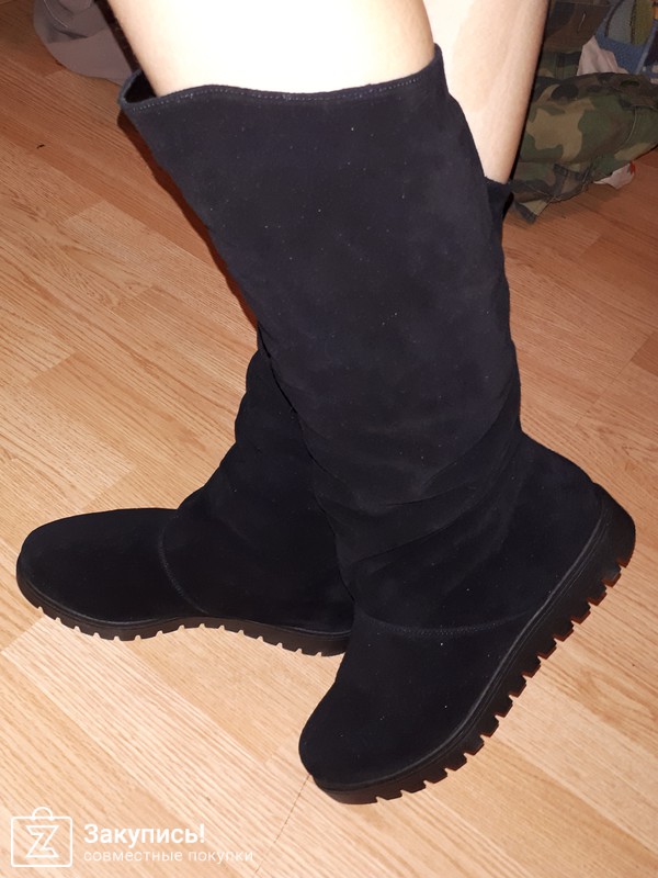 Брала сапоги ещё в ноябре) вот и до отзыва дошли руки))) Сапоги женские из натуральной замши черного цвета со шнуровкой сверху, на не высокой танкетке и утолщенной подошве, М-102- замечательные сапоги, заказ был в зимнем варианте. Покупала маме. Она очень довольна и ценой и качеством. Единственное они на НЕ худую ногу. Меняла на свою у меня в голяшке болтаются, даже шнуровка не помогла. Организатору большое спасибо за такую закупку.