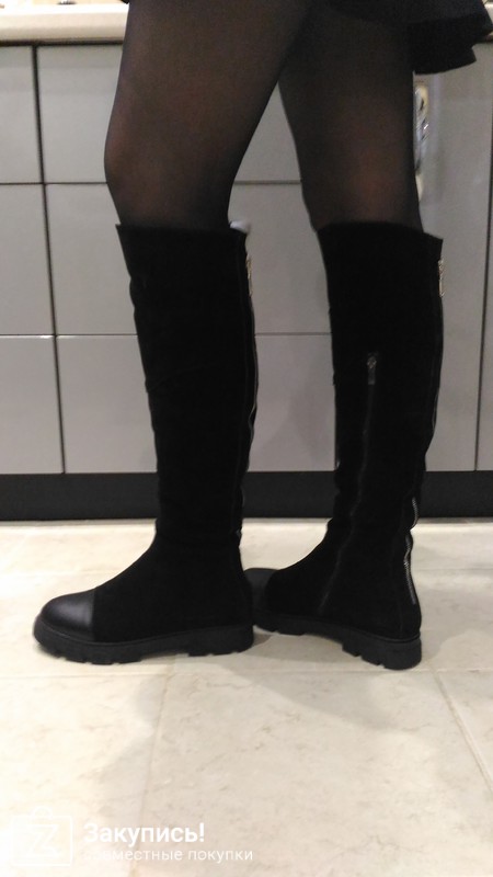 Забыла написать что это зима, меха нет только на колене, около 8 см кожа, если измерять сверху вниз . И еще рост модели на фото) 175см примерно и сапоги ей чуть-чуть прикрывают колено, мой рост 162см и колено сапоги закрывают почти полностью.