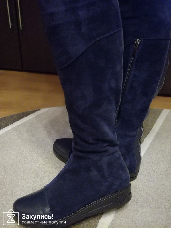 Заказывала зимние сапожки, евроутепление)думаю не замерзну,выше меха баечка,в размер отлично! ноге комфортно и уютно!!жаль фото не передает красоту цвета замши,просто супер!! по мне так немного подкачала подошва видом,дешевит что ли ?)) но всем понравились сапожки очень!