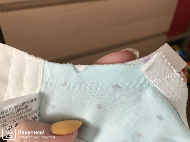 Ткань плотная, швы обработаны не везде, сзади на спине есть такие, кнопочки впереди удобные, хорошо вшиты. Чашка на размер 85 D мелковата, мне грудь приплющивает, по форме не круглая, ближе к треугольной.