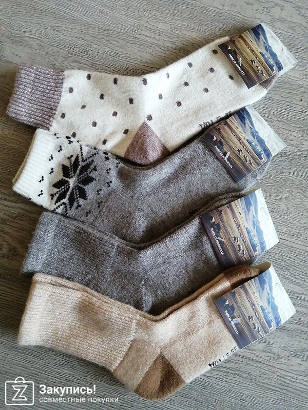 Очень понравились носки из 100% монгольской шерсти. Брала взрослые размер 35-37 на 35. Детские размер 5 на 34. Всё подошло. После стирки не сели. Рекомендую.