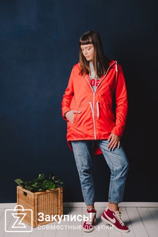 Получила ветровку-парку. Алого цвета. Хорошенькая. Ткань как будто непромокайка на мой 48, в размер. Из таких вещей, которые до дыр носят.