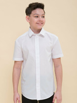Рубашка для мальчика из мягкого высококачественного трикотажа пике. Застёгивается на кнопки. Модель со спущенным плечом.