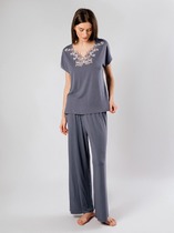Пижамы с футболкой и брюками от торговой марки Индефини не даст вам замёрзнуть в прохладную погоду.— Описание у На сайте поставщика