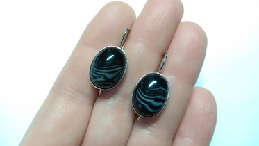 Серьги из мельхиора с агатом 16*12мм, камень натуральный