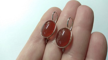 Серьги из мельхиора с сердоликом, камень 16*12 мм