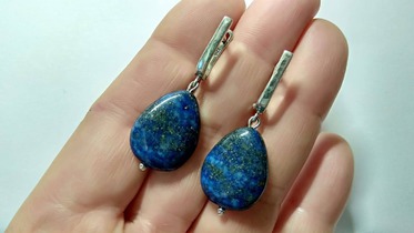 Серьги с натуральным лазуритом, камень 16*12 мм
