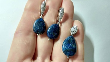 Гарнитур с натуральным лазуритом,камень 15*19 мм.
