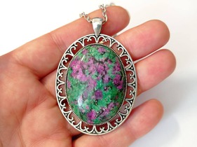 Кулон с натуральным циозитом, в ассортименте (разное обрамление камня), размер 40*30 мм, ювелирный сплав, на цепочке