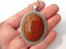 Кулон с имитацией авантюрина, в ассортименте (разное обрамление камня), размер 40*30 мм, ювелирный сплав, на цепочке