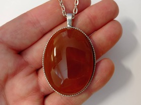 Кулон с натуральным сердоликом, в ассортименте (разное обрамление камня), размер 40*30 мм, ювелирный сплав, на цепочке