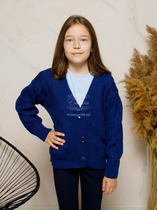 Кардиган для девочекРазмер: 116-128см ( one size)Состав: акрил 100%Артикул: g-019Страна производства: РоссияЦвет: синий