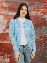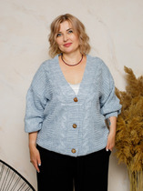 Кардиган " Весна"Размер:44-46,48-50,52-54Состав: акрил 100%Артикул: w-548Страна производства: РоссияЦвет:нежно-голубой