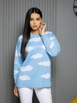Джемпер "Облака"Размер: 42-48 (one-size)Состав: акрил 80%, шерсть 20%Артикул: w-004Страна производства: РоссияЦвет: голубой