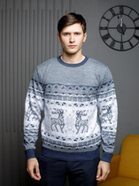 Джемпер мужскойСтрана производства: РоссияЦвет: джинсСостав: 70% акрил, 30% шерстьАртикул: m-035Размер: 48,50,52,54,56