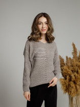 Джемпер женскийРазмер: 42-46,48-52Состав: акрил 70%,шерсть 30%Артикул: w-591Страна производства: РоссияЦвет:бежевый