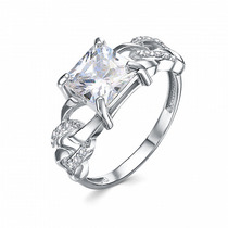 Кольцо с фианитом родированное серебро 925*