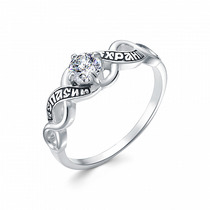 Кольцо (Спаси и Сохрани) из серебра штамп.родированное с алмазной огранкой