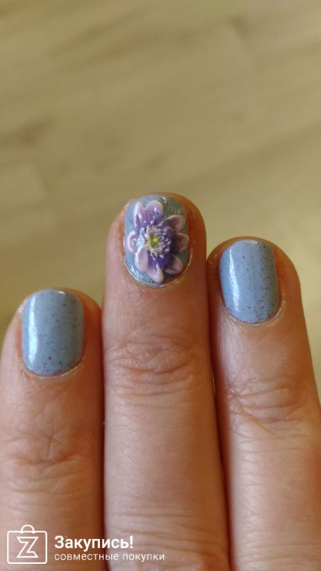 Следующие слайдеры наносила уже на декоративный лак. Получилось их закрепить, было непривычно, так как большой цветок очень выпирал на ногте, и я боялась, что все отвалится)) Но через пару дней неудобства исчезли - а красота осталась)