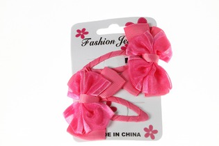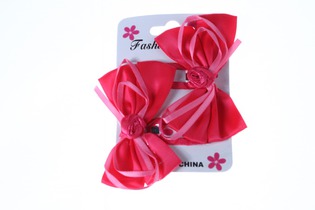 Зажим для волос Бантик фуксия с розочкой уп.2шт