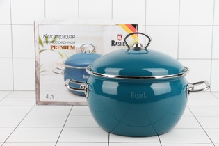 Кастрюля 4л эмалир, с эмалир.кр., ручки хром, бирюза