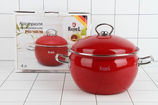 Кастрюля 4л эмалир, с эмалир.кр., ручки хром, красная