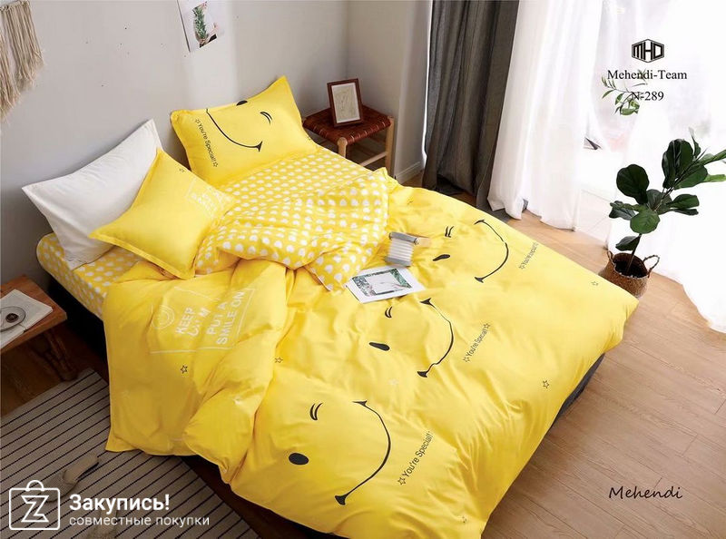 Очень яркое радостное бельё. Дочке понравилось. На ощупь приятное такое, написано \"эффект персиковой кожи\" на упаковке.