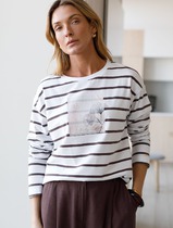 Блузка в полоску свободного силуэта с карманом из хлопка с добавлением льна