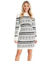 outlet46 Damen Fairisle-Strick-Minikleid mit Rollkragen Langarm-Kleid 946814 Wei