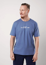Фуфайка с коротким рукавом среднего объема, круглым вырезом горловины, которая оформлена обтачкой из рибаны.— Описание у На сайте поставщика