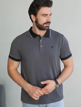 Vilatte Футболка-поло из фактурного трикотажа U49.012 т.серый однотонный