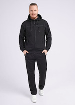 Брюки с отрезным поясом из кашкорсе, двумя карманами в боковых швах и одним накладным карманом сзади.