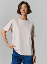 Boyfriend крой, укрепление по горловине спинки, круглый вырез. Горловина рибана. Отстрочка по горловине переда— Описание у На сайте поставщика