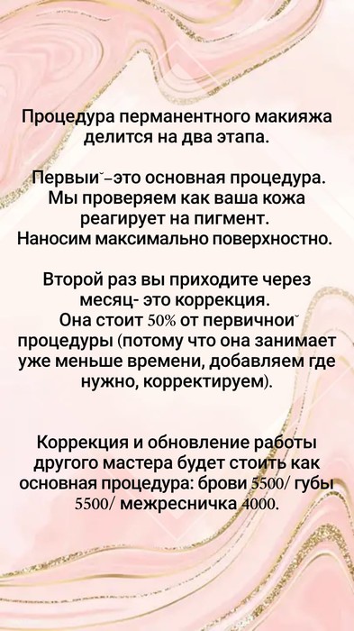 И если все устроит и через месяц, ты решишь сделать перманентныи макияж, то я вычту эту сумму из стоимости работыalt