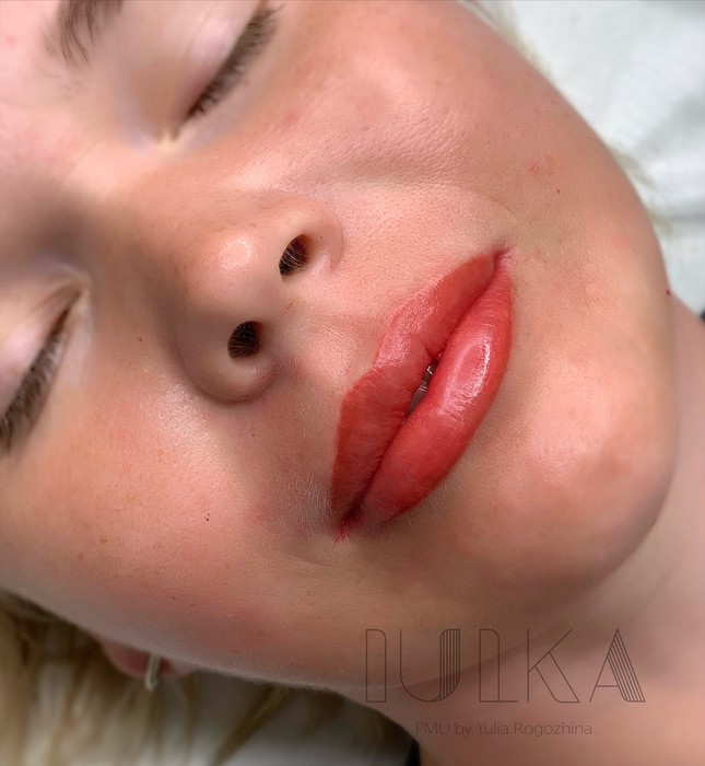 128588;Скажу честно, небольшой отёк как ни крути будет присутствовать на губах часа 2 после процедуры.