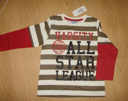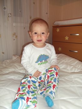 Наконец, добралась до хвасталки. Анют, с тебя началось мое путешествие по совместным закупкам, с ASDA. Одежка очень понравилась, качество - замечательное, стежки все ровные, застежки отлично держатся, цена - порадовала, фото на сайте - соответствует оригиналу. По соответствию размеру сказать сложно, наверное, соответствует. Просто у меня сынишка неочень стандартный, в свои 10 мес. мы носим верх 86 размера, а низ - 92. Этот верх на фото стоит смехотворные деньги - 3,5 фунта. Ткань оказалась легкая, дышащая, невероятно мягкая. Детали рукавов сделаны в нахлест, хорошая имитация двойных рукавов. Немного великовато в плечах, на 1 см, так что еще пару месяцев можно носить точно =). Подбирала к штанам и была рада что фото соответсвовало оригиналу и получился хороший комплект. А слипик пока еще не одели, стало тепло и мы в нем пока еще не спали. Потом добавлю фото как оденем. Но качество тоже отличное, хлопок приятный на ощупь. Вообщем, спасибо огромное!