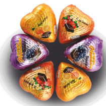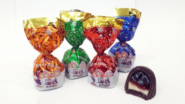 Конфеты куполообразной формы, с комбинированной начинкой, со вкусами черной смородины, клюквы, яблока, клубники, апельсина.