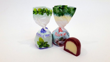 Конфеты мини купольной формы в фирменной молочной глазури с нежной начинкой со вкусами" "Кокосовые сливки", "Экстракт мяты".