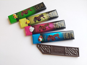 Мини шоколадки по 9 г., с добавкой дроблёных орехов, арахиса, кунжута, халвы, воздушного риса, кокоса.