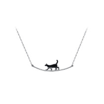 Колье "Кошка" из серебра на цепочке с черной эмалью - 541