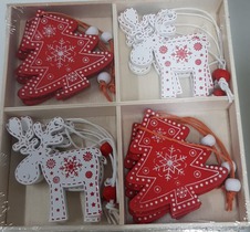 Набор новогодних подвесок в деревянной коробке. Количество в наборе 12шт Высота 6см. Без выбора. В ассортименте.